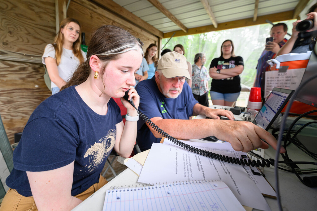 โKen Lundgren (KD9PPX) with Tess Rowan practicing CW.โ